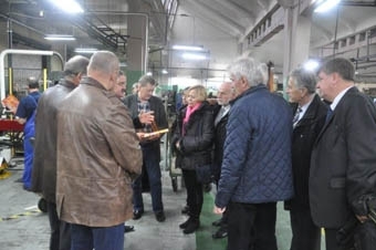 Uczestnicy spotkania zwiedzają linię produkcyjną w firmie TERMET w Świebodzicach, oprowadzani przez Dyrektora J.Humeńczuka.