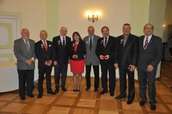 Wieczorny poczęstunek był poprzedzony wręczeniem Odznaki Konfederacji Budownictwa i Nieruchomości im. Króla Kazimierza Wielkiego kilku naszym członkom. Złotą Odznakę z rąk Dyrektora Polskiej Korporacji Techniki SGGiK Tomasza Malowanego otrzymali: Bereżański Zbigniew - Firma IZOTERMA; Butrymowicz Czesław - Firma TERMET Sp. z o.o.; Cichy Mariusz - Firma FERRPOL Bracia Matuszewscy Sp. z o.o.; Humeńczuk Jerzy - Firma TERMET Sp. z o.o.; Jankowski Andrzej - BUDOMAL Firma Budowlana; Mikołajczak Violetta - Skarbnik Oddziału Korporacji Dolny Śląsk.